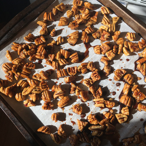 Maple Balsamic Glazed Roasted Pecans